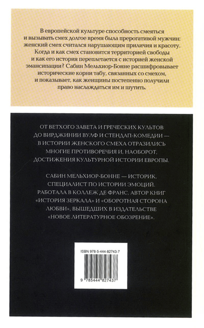 Sabine Melchior-Bonnet atšifrē ar smiekliem saistīto tabu vēsturiskās saknes un parāda, kā sievietes pakāpeniski ieguva tiesības tos baudīt un par tiem jokot. No Vecās Derības un grieķu kultiem līdz Virdžīnijai Vulfai un stand-up komēdijai, sieviešu smieklu vēsture atspoguļo daudzas pretrunas un, gluži pretēji, sasniegumus Eiropas kultūras vēsturē.