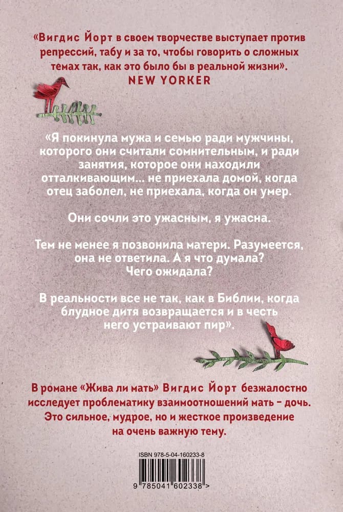 Romānā "Vai māte ir dzīva" Vigdis Jorts nežēlīgi pēta mātes un meitas attiecību problemātiku. Tas ir spēcīgs, gudrs, bet arī grūts darbs par ļoti svarīgu tēmu. Reiz Johanna pārtrauca visas attiecības ar savu ģimeni. Pēc gadiem viņa atgriežas pie savas ģimenes un cenšas saprast, kas īsti izraisīja viņu sāpīgo šķiršanos. Lai to izdarītu, viņai ir ļoti svarīgi aprunāties ar savu māti. Tomēr visi viņas mēģinājumi ar viņu sazināties ir veltīgi. Māte neceļ telefona klausuli, neatbild uz viņas vēstulēm, viņa it kā neeksistē. Johanna vēro ģimenes dzīvi no attāluma. Viņai jāturpina mēģināt. Vai viņai ir jācenšas?
