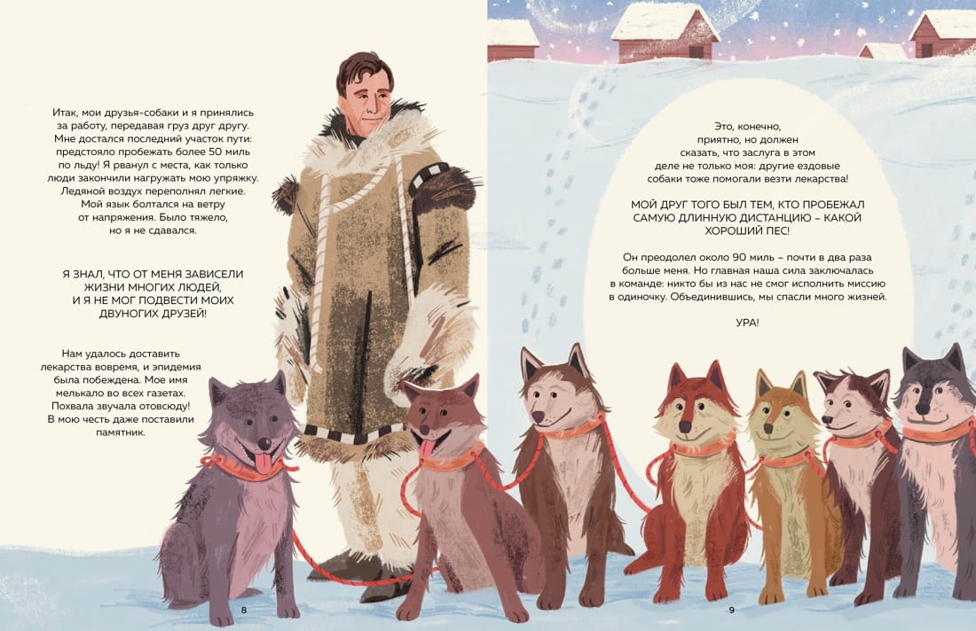 Jūs uzzināsiet par bezbailīgo suni Balto, kurš epidēmijas laikā piegādāja zāles mazas Aļaskas pilsētiņas iedzīvotājiem; par drosmīgās Laikas lidojumu kosmosā; par nesavtīgo delfīnu Moko, kurš palīdzēja diviem vaļiem atrast ceļu mājup; un par pasta balodi, kurš izglāba daudzu cilvēku dzīvības.