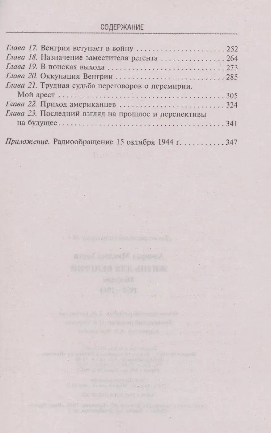 Admirālis Nikolajs Hortijs bija Ungārijas Karalistes reģents no 1920. gada 1. marta līdz 1944. gada 15. oktobrim. Būdams regents, Hortijs centās īstenot politiku, kuras mērķis bija atjaunot Ungāriju tās agrākajās robežās pirms Austroungārijas impērijas sabrukuma. Šī politika galu galā noveda viņu pie sabiedrošanās ar Hitleru. Tā rezultātā Ungārija atguva dažas no savām senču zemēm Serbijā, Horvātijā, Slovākijā un Rumānijā. Taču par to nācās maksāt, un ungāru formējumi devās uz Austrumu fronti, kur cieta ievērojamus zaudējumus. Drīz Hortijs saprata, ka Osi armiju sakāve ir neizbēgama, un sāka slepenas sarunas ar sabiedrotajiem. Tomēr viņam neizdevās izvest valsti no kara. Karš Ungārijai beidzās tikai līdz ar padomju karaspēka ierašanos, ko Hortijs uzskatīja par ienaidniekiem un okupantiem. hortija memuāri ir stāsts par viņa kā regenta dzīvi karaļvalstī bez karaļa un admirāļa bez flotes dzīvi un par to, kā viņš cīnījās par savu valsti Eiropā valdošajā konfliktu, skaudības un naida atmosfērā.