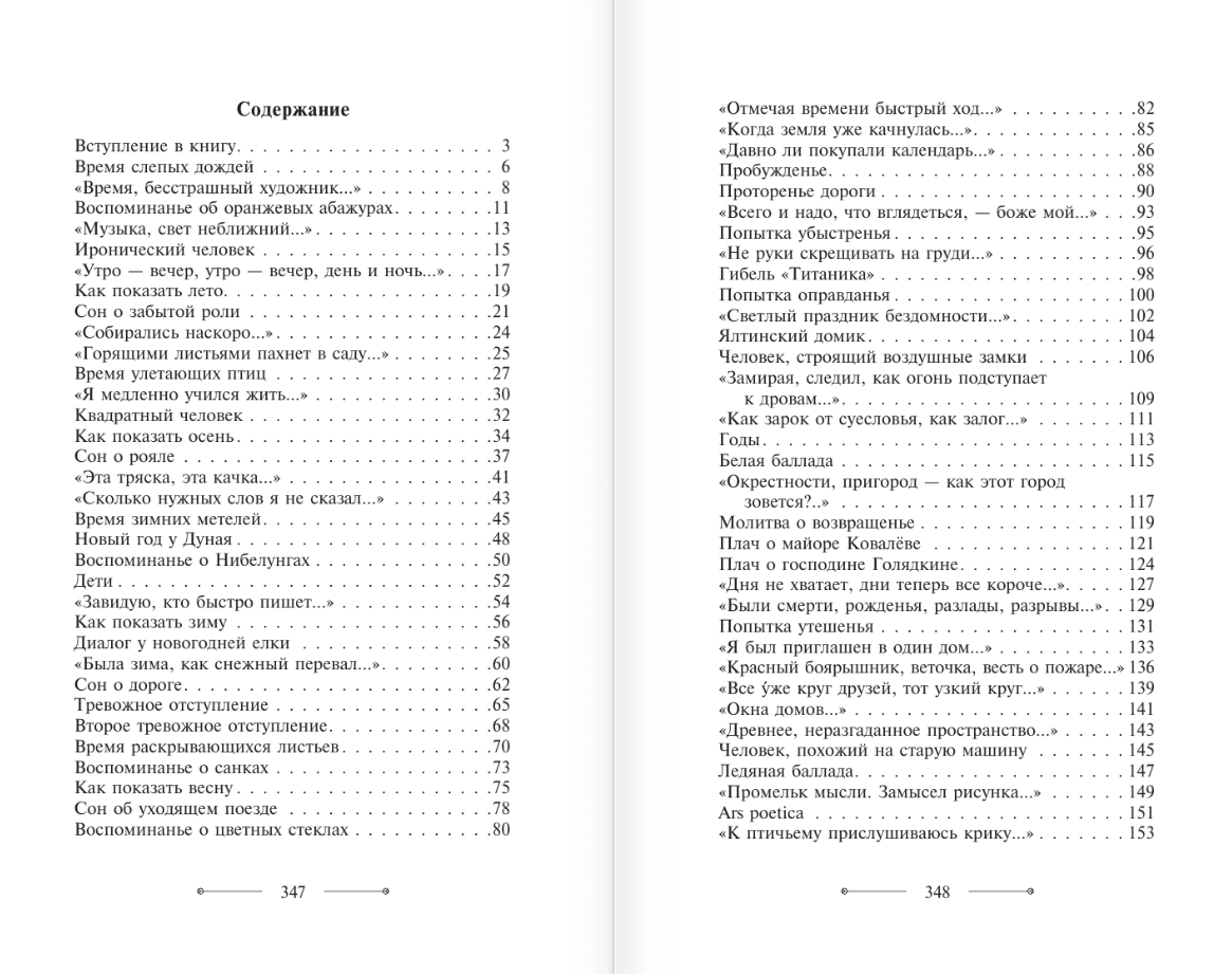 Šajā izdevumā iekļauti labākie dzejoļi no visiem dzejnieka krājumiem, tostarp slavenā "Kino" (1970), kas viņam atnesa popularitāti visā valstī, un grāmatas "Tukšie panti" (1991), kas saņēma Krievijas Valsts balvu literatūrā un mākslā, kā arī darbi, kas sarakstīti viņa dzīves pēdējos gados. Savos pārsteidzoši liriskajos dzejoļos Jurijs Levitanskis pārdomā eksistences jēgu un atbildību pret savu laiku, cenšas izprast mūsdienu cilvēka sarežģīto iekšējo pasauli, cenšas tvert katru viņa dzīves dienu, aptvert pagātni un paredzēt nākotni.