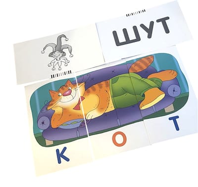 Attēlu kartīšu komplekts no sērijas "Izklaidējošās kartītes" ir daļa no lasītprasmes apmācības komplekta bērniem. Kopējais kartīšu skaits komplektā nodrošina, ka bērns attīsta pilnīgu sākotnējo lasīšanas tehniku. Spēlējoties ar kartītēm un veidojot vārdus, bērns iemācās lasīt un iegaumē vārda grafisko attēlojumu. Šajā komplektā ir iekļautas 48 kartītes, kuras var izmantot, lai izveidotu 16 attēlus. Ja attēls ir pareizi salikts, tas veido vienzilbīgu vārdu. Spēlē tiek izmantota gan kartītes priekšpuse, gan aizmugure, uzlabojot lasīšanas apmācības efektivitāti. Šis resurss ir paredzēts pirmsskolas un sākumskolas vecuma bērniem. To izmanto pirmajā mācību posmā – vienzilbīgu vārdu ar cietajiem līdzskaņiem lasīšanā. Ir iekļauta detalizēta instrukcija vecākiem.