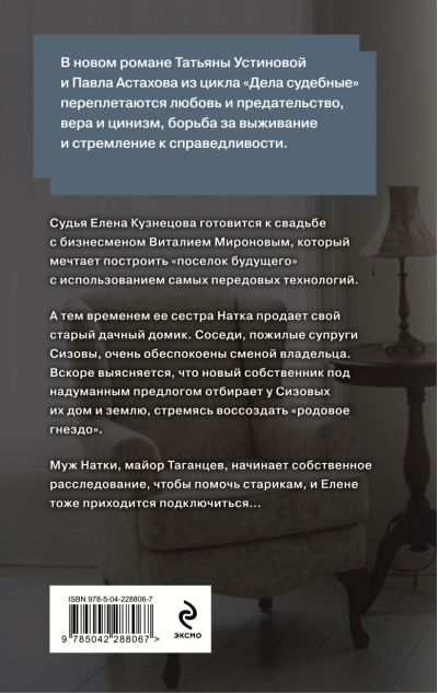 Tatjanas Ustinovas un Pāvela Astahova jaunajā romānā no sērijas "Tiesas lietas" savijas mīlestība un nodevība, ticība un cinisms, cīņa par izdzīvošanu un taisnīguma meklējumi.