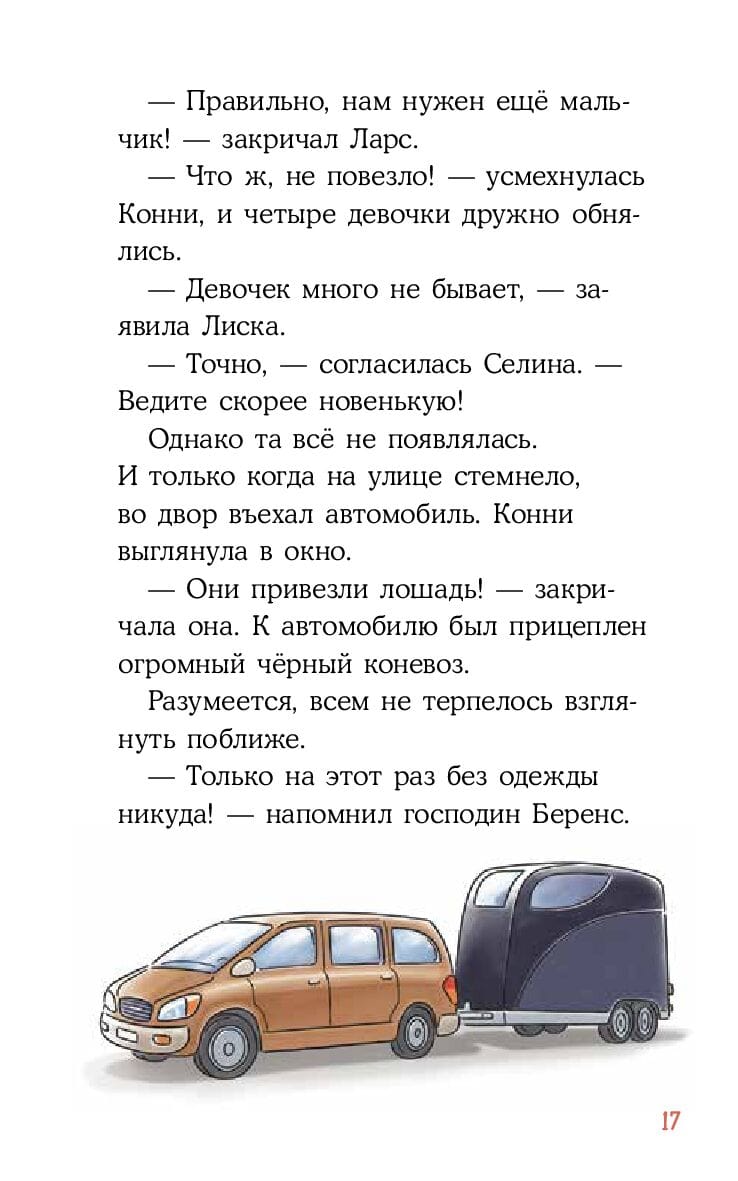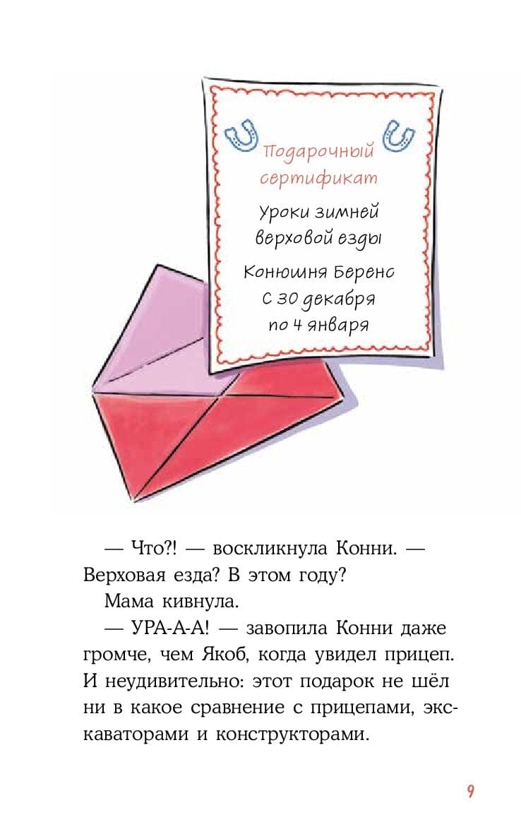 Šis Jaunais gads Connie tiksies uz stalli: viņa gaida zirgu izjādes ziemas mežā, mājīgas tikšanās ar kakao un saldumiem, spēles ar draugiem un... bīstams piedzīvojums! Iedomīgā meitene Verēna paceļ zirgu un pamet vienatnē. Vai Konnija un viņas draugi var glābt situāciju un kaprīzo princesi? Piemērots neatkarīgai vai kopīgai lasīšanai naktī no septiņiem gadiem.