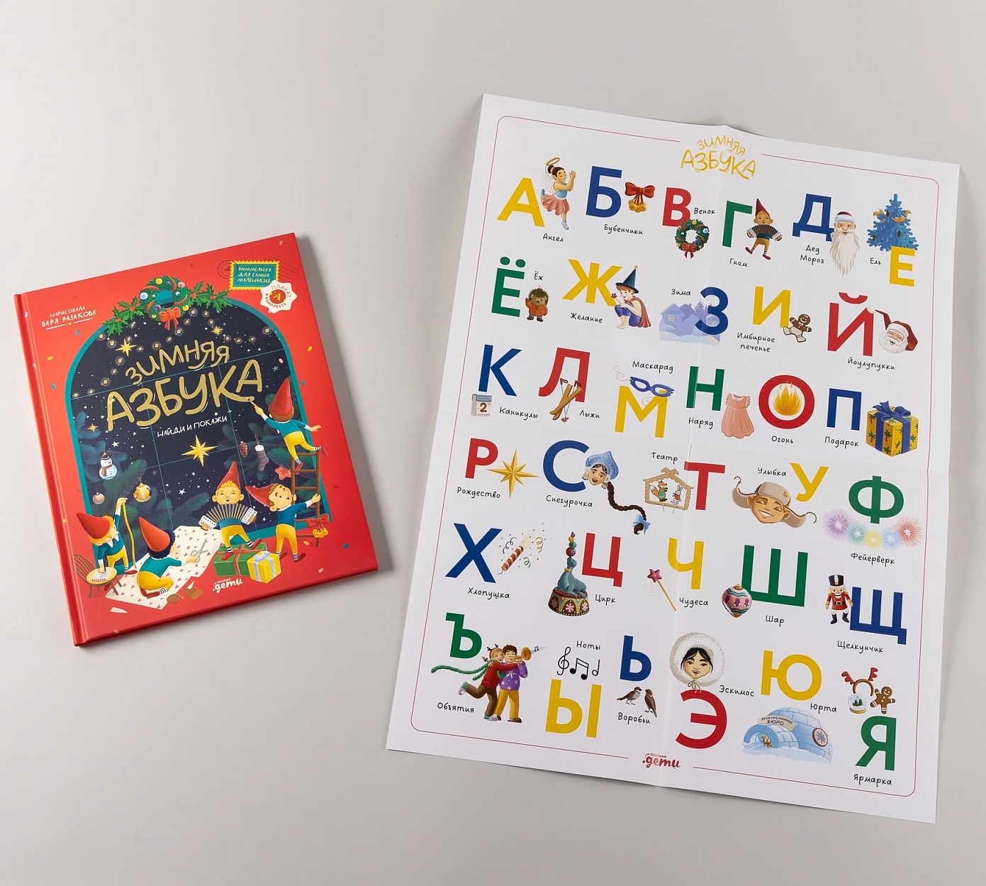 Krāsains dāvanu izdevums ar alfabēta plakātu.