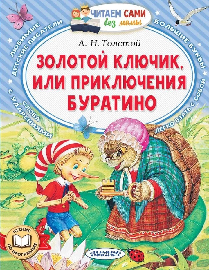 Alekseja Nikolajeviča Tolstoja "Zelta atslēdziņa jeb Buratino piedzīvojumi" ir iemīļota pasaka, bez kuras nav iespējams iedomāties laimīgu bērnību. Šo īso, autora pārstāstu par šiem priecīgajiem piedzīvojumiem ir viegli lasīt pat topošajiem grāmatu mīļotājiem. Lielie burti un uzsvari palīdzēs jaunajiem lasītājiem uzlabot lasītprasmi.