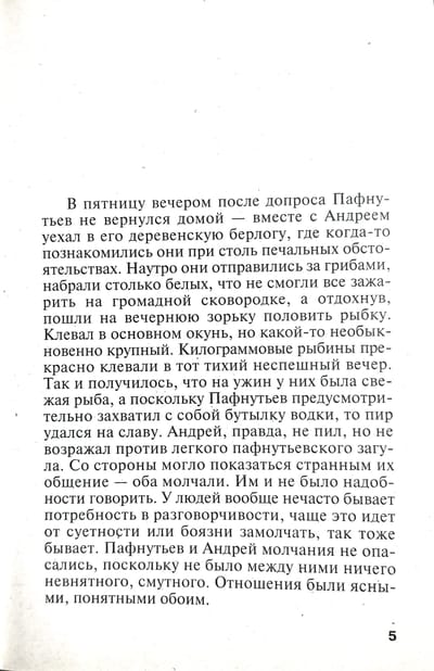 Izmeklētāja darbs nav domāts vājprātīgajiem: līķi, asins šļakatas, slepkavu miegainas acis, upuru kliedzieni un vaidi. Gadu gaitā Pafnutjevs ir redzējis visu. Bet pat viņš nodreb, kad bandīti viņam parāda viņa labākā informatora nocirsto galvu. Tas nav pats patīkamākais skats, it īpaši, ja rokas ir saslēgtas rokudzelžos. Un šķiet, ka tas nav pēdējais "pārsteigums", ko bandīti ir sagatavojuši ķīlnieku izmeklētājam...