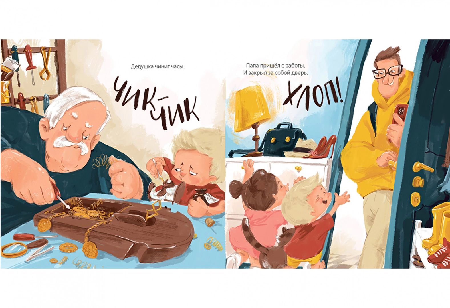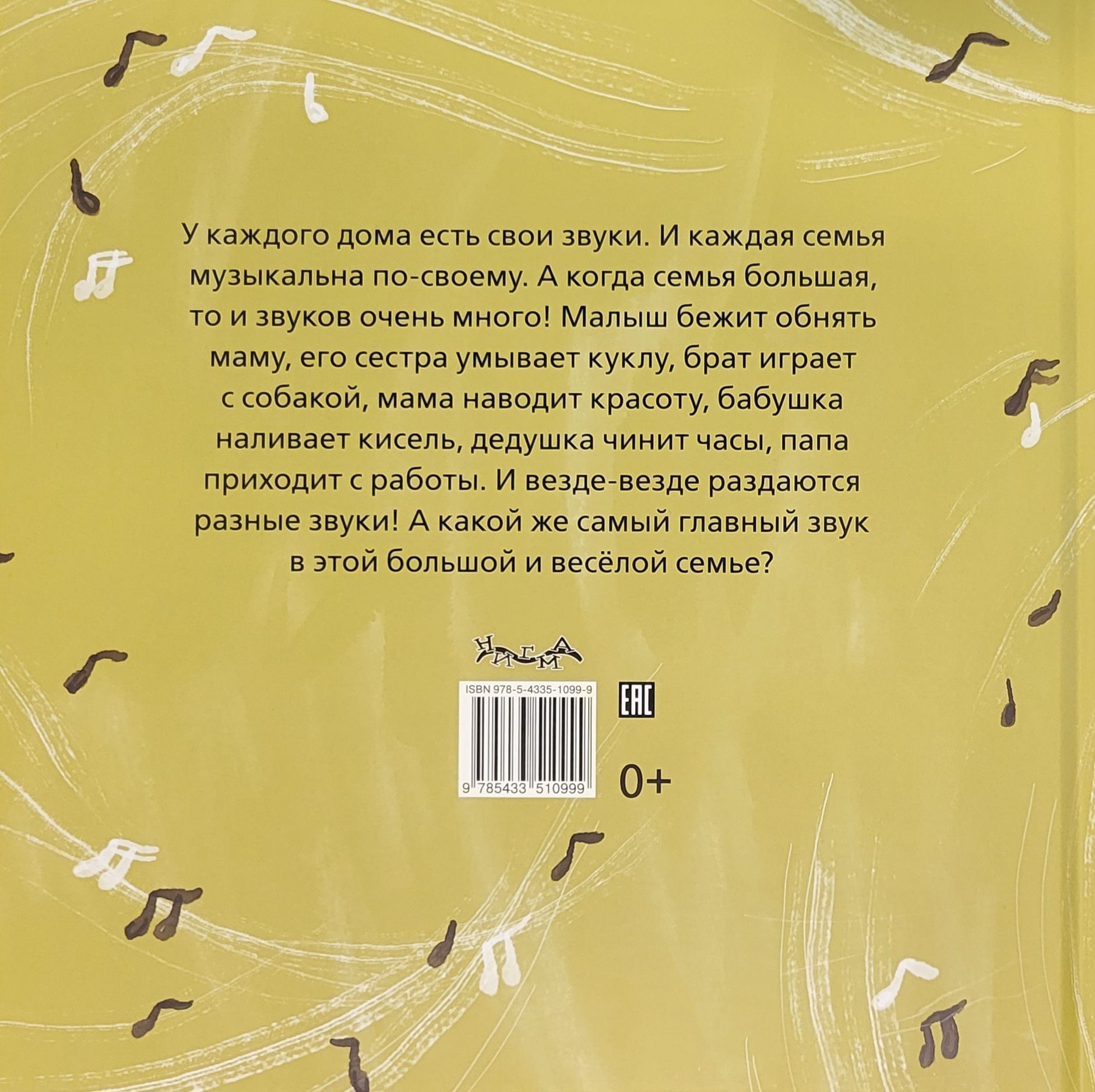 Katrai mājai ir savas skaņas. Un katra ģimene ir muzikāla savā veidā. Un, ja ģimene ir liela, tajā ir daudz skaņu. Mazulis skrien apskaut mammu, māsa mazgā lelli, brālis spēlējas ar suni, mamma uzkopj māju, vecmāmiņa lej kiseli, vectēvs salabo pulksteni, tētis atgriežas mājās no darba. Un visur un visur skan dažādas skaņas. Un kāda ir svarīgākā skaņa šajā lielajā un jautrajā ģimenē?