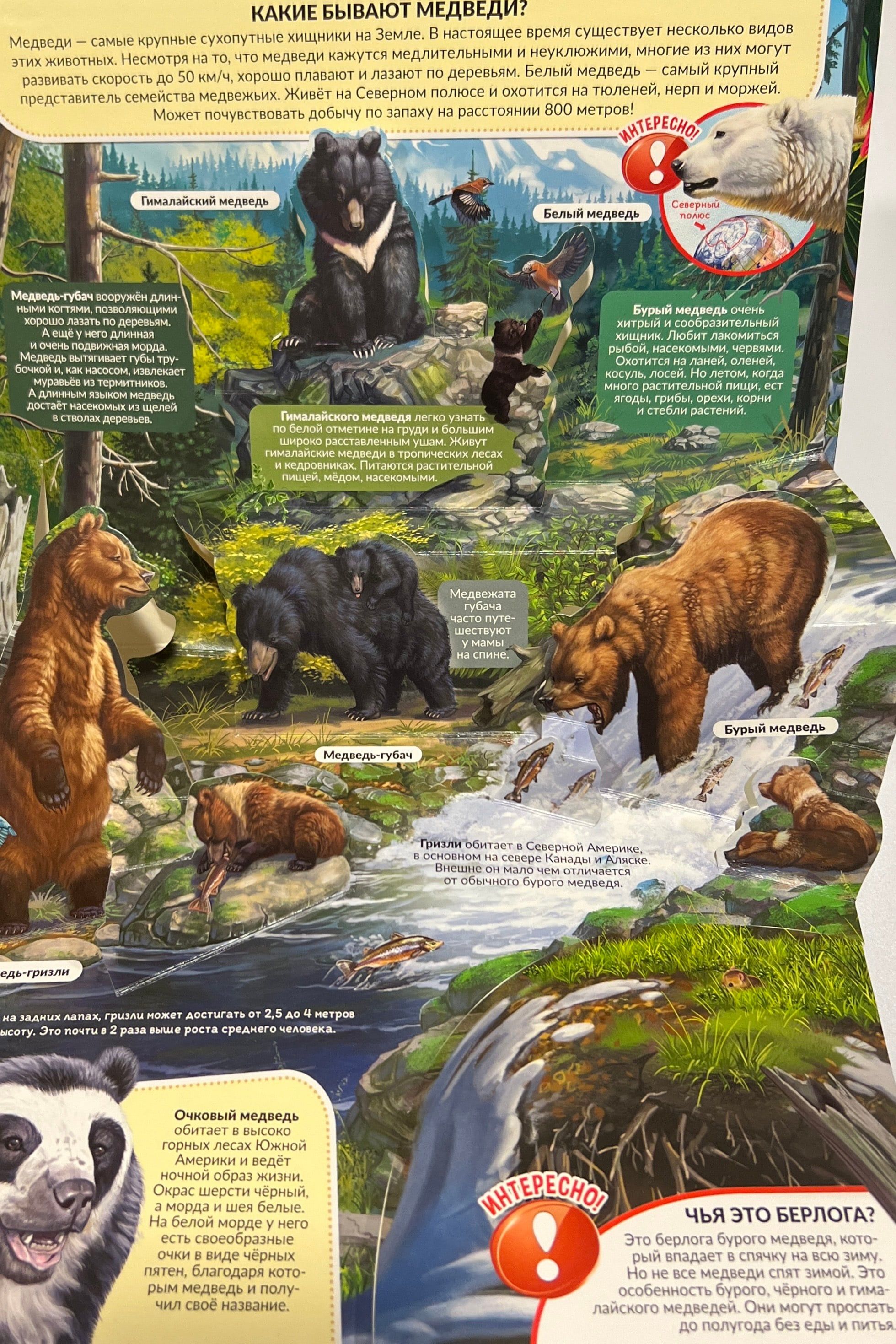 Яркая энциклопедия «Хищники» в формате книжки-панорамки с удивительными объемными иллюстрациями. 3D развороты создают ощущение дополненной реальности. Также на разворотах книги находятся откидные клапаны-сюрпризы, заглянув под которые малыш увидит интересный факт или изображение. Наличие объемных и открывающихся элементов развивает мелкую моторику и пространственное мышление ребенка. Порадуйте своего ребенка увлекательной энциклопедией-панорамкой с яркими, объемными иллюстрациями!