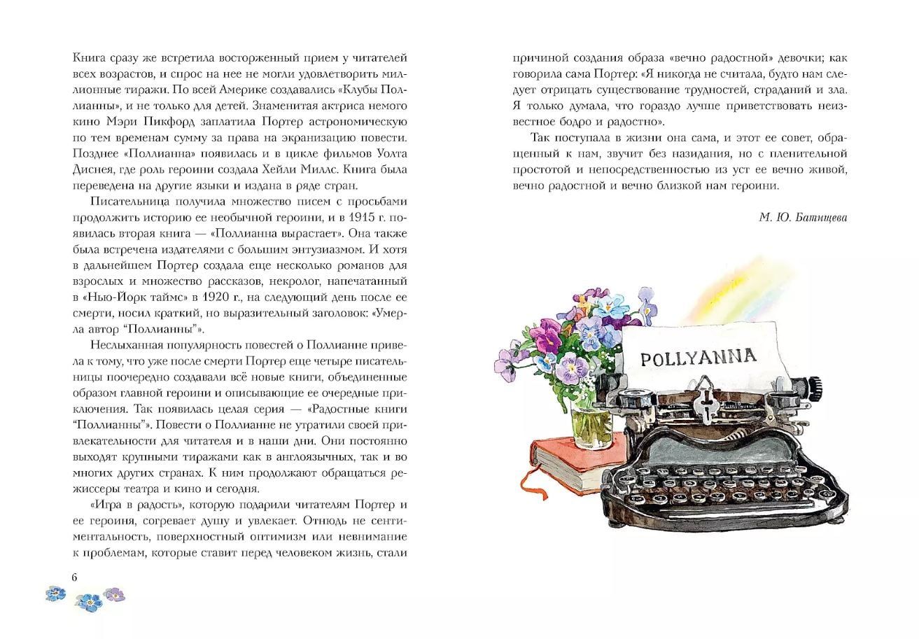 Писательница Элинор Портер (1868—1920) известна тем, что придумала девочку Поллианну, которая «играет в радость» и учит этому других. Одноименный роман был восторженно встречен читателями и критиками и получил мгновенный успех. Эта книга остается бестселлером и по сей день.