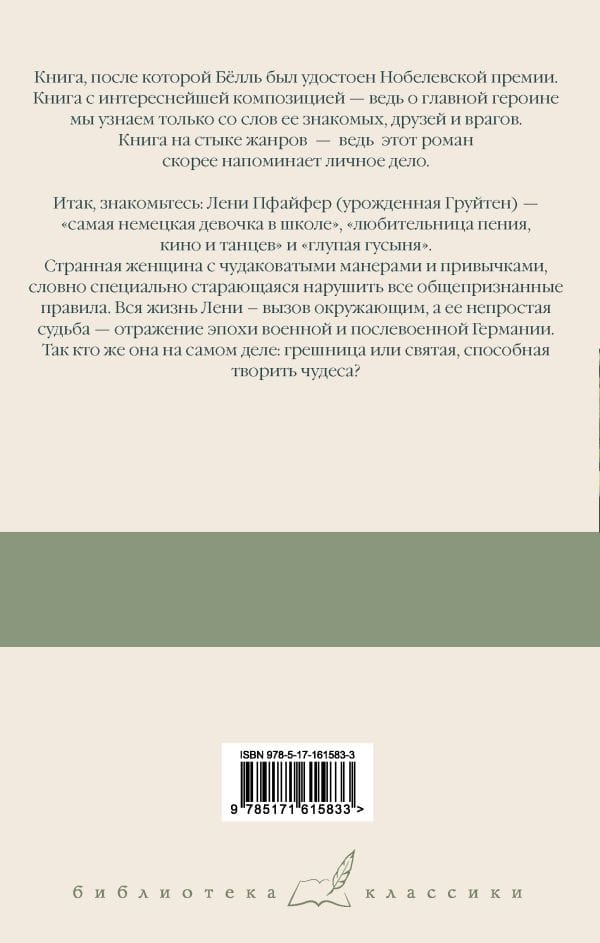 Книга, после которой Бёлль был удостоен Нобелевской премии.