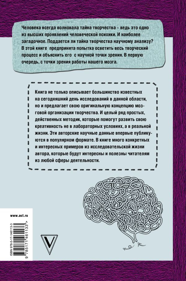 Человека всегда волновала тайна творчества – ведь это одно из высших проявлений его психики. И наиболее загадочное. Поддается ли тайна творчества научному анализу? В этой книге предпринята попытка осветить весь творческий процесс и объяснить его с научной точки зрения. В первую очередь, с точки зрения работы нашего мозга. Книга не только описывает большинство известных на сегодняшний день исследований в данной области, но и предлагает свою оригинальную концепцию мозговой организации творчества. И целый ряд простых, действенных методик, которые помогут развить свою креативность не в лабораторных условиях, а в реальной жизни. В книге много конкретных и интересных примеров из исследовательской жизни автора, которые будут интересны и полезны читателям любой сферы деятельности.