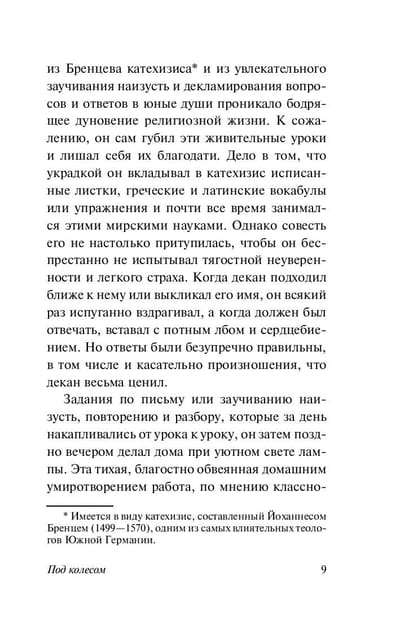 И вот – планка взята, экзамен сдан блестяще, отец и учителя едва ли не лопаются от гордости. Но вместе с честолюбивыми замыслами в Хансе теперь день ото дня растет панический страх отстать, оступиться. В бессмысленной и беспощадной гонке за призрачными школьными успехами он все больше и больше попадает "под колесо" бездушной машины воспитания, которая губит все, к чему бы ни прикоснулась, от математики до стихов Гомера…