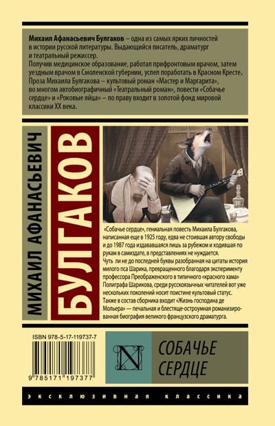 Чуть ли не до последней буквы разобранная на цитаты история милого пса Шарика, превращенного благодаря эксперименту профессора Преображенского в типичного «‎красного хама»‎ Полиграфа Шарикова, среди русскоязычных читателей вот уже нескольких поколений носит поистине культовый статус.