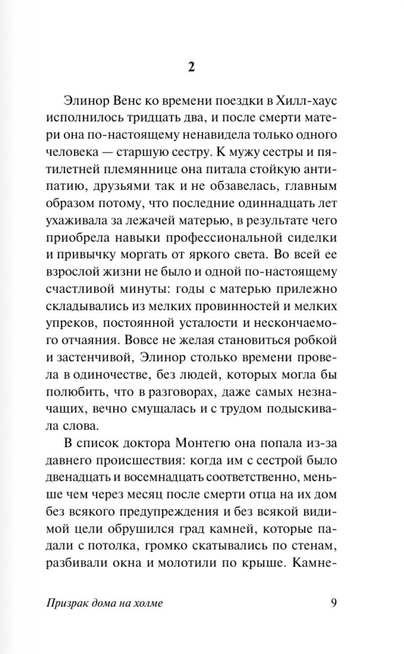 Но однажды тишину дома нарушает шумная компания: доктор Монтегю, исследователь паранормальных явлений; Теодора, его беззаботная помощница; Элинор, хрупкая девушка, не понаслышке знакомая с полтергейстами; и Люк – будущий наследник Хилл-хауса. Никто даже не подозревает, каким кошмаром обернется их поездка…