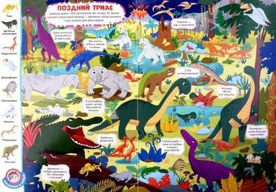 Виммельбух с окошками «Динозавры» — это большая красочная книга-картинка, на страницах которой малыш сможет познакомиться с удивительными древними животными. Путешествуя по доисторическим эпохам, ребёнок встретится с гигантскими насекомыми, первыми млекопитающими, и, конечно же, с динозаврами: травоядными и хищными, наземными, водоплавающими и летающими. Увлекательные окошки оживят иллюстрации и позволят ещё глубже погрузиться в исследование древнего мира. Окошки имеют удобную выемку для детских пальчиков, чтобы ребёнку было удобно открывать их. Книга выполнена из плотного картона с ламинированной обложкой. Листайте книгу вместе с малышом, открывайте окошки и узнавайте новое!