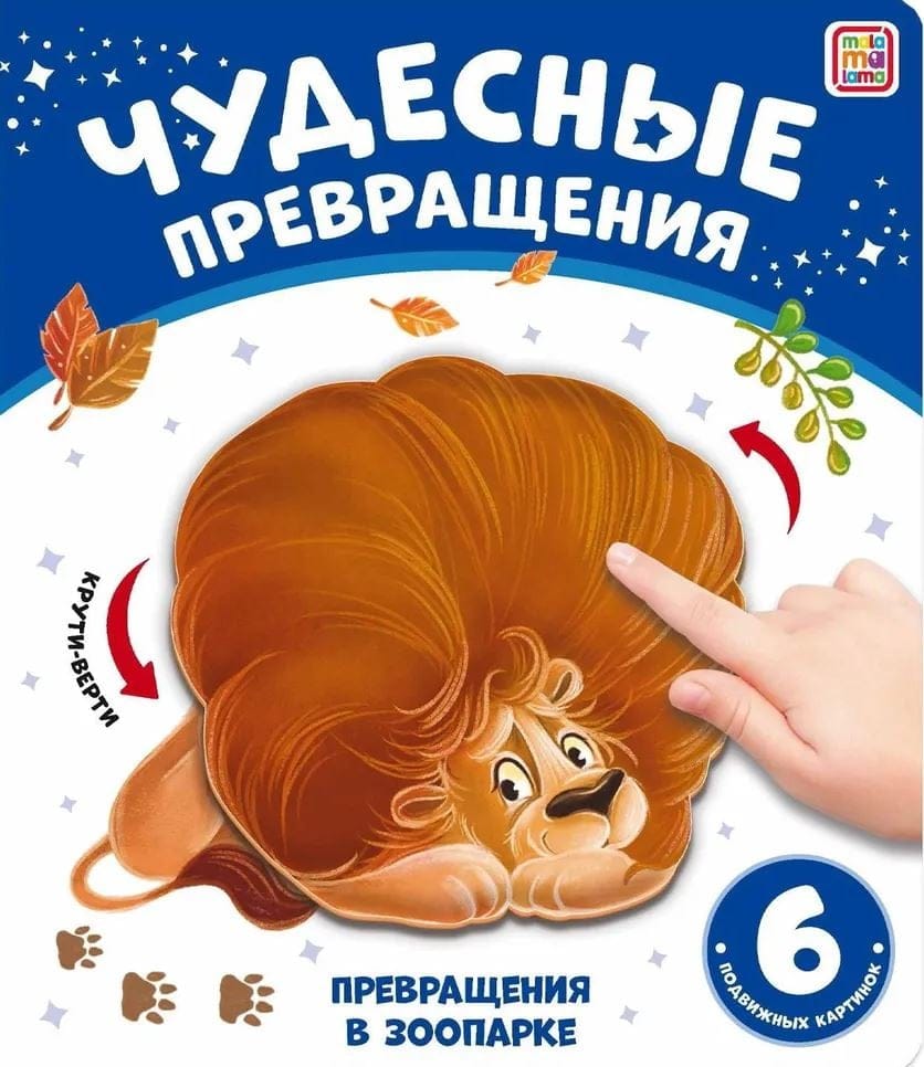 Серия «Чудесные превращения» от торговой марки Malamalama — это книги, полные волшебства. На каждом развороте — добрый стишок и вращающийся элемент, благодаря которому одна забавная и милая фигурка становится совершенно другой. Малыш сможет повернуть его пальчиком, не прилагая никаких усилий, и увидеть настоящее чудесное превращение. В книге «Превращения в зоопарке» знакомые малышам животные с лёгкостью становятся жучком, собачкой, котёнком или бабочкой.