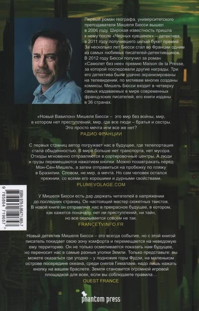Мишель Бюсси в своем новом романе ступил на неведомую для него территорию — фантастики и антиутопии. Но сделал это с присущими ему изяществом, непринужденностью и умением удивлять неожиданными сюжетными ходами. В новом романе будет все: и философские размышления, и динамичный сюжет, и романтика, и, конечно, детектив.