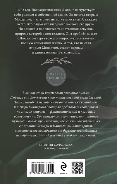 Но однажды появляется таинственная девушка, природа которой непостижима. Она пройдёт вместе с Людвигом через всю его непростую, мятежную, полную испытаний жизнь. И тот, кто не стал вторым Моцартом, станет первым и единственным Бетховеном…