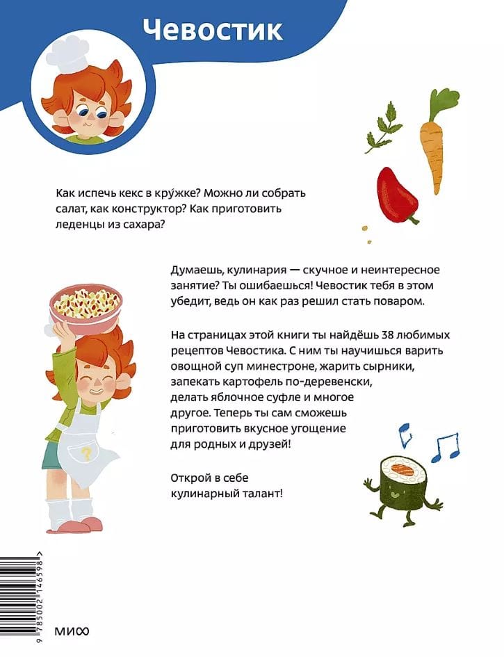 Сборник вкусных рецептов, которые помогут ребенку научиться готовить вместе с любимым героем Чевостиком. В книге вы найдете 38 рецептов: сырники, нежные блинчики в шоколадном соусе, паста с сыром, пицца, картофель по-деревенски, нежный чизкейк, ягодный лимонад и многие другие.