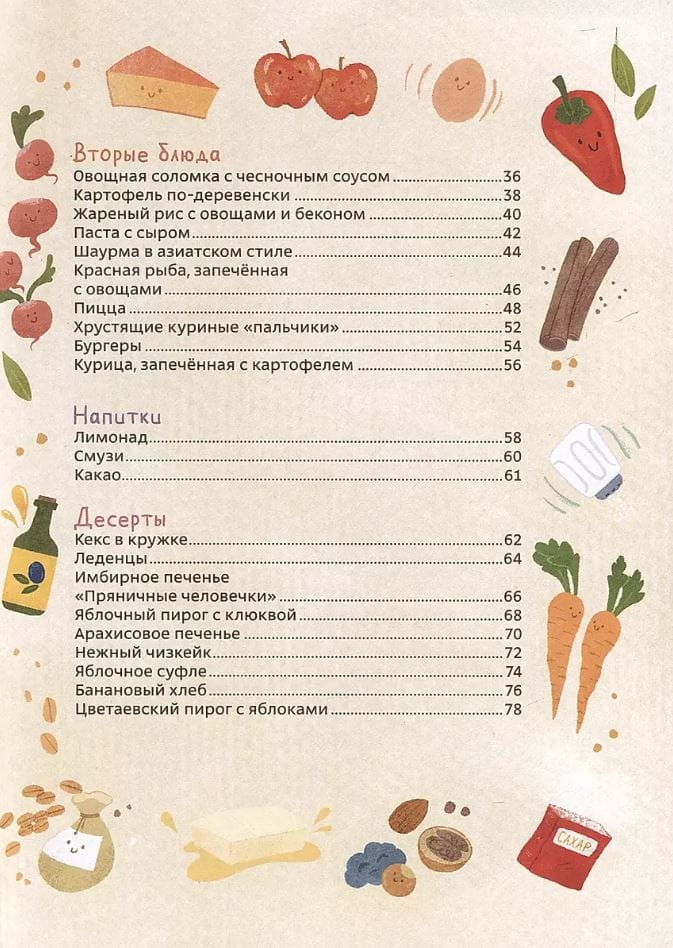 Рецепт каждого блюда разбит на отдельные шаги: для взрослых, детей и совместной работы, поэтому ребенок сможет активно участвовать в процессе приготовления и делать то, что ему под силу. А еще на страницах книги вы найдете интересные факты о продуктах и истории блюд.