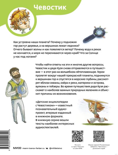 Книга «Планета Земля» отправляет любимых героев детей – Чевостика и дядю Кузю – в кругосветное путешествие вокруг Земли. Во время путешествия Дядя Кузя расскажет о многих природных явлениях и причинах их появления.