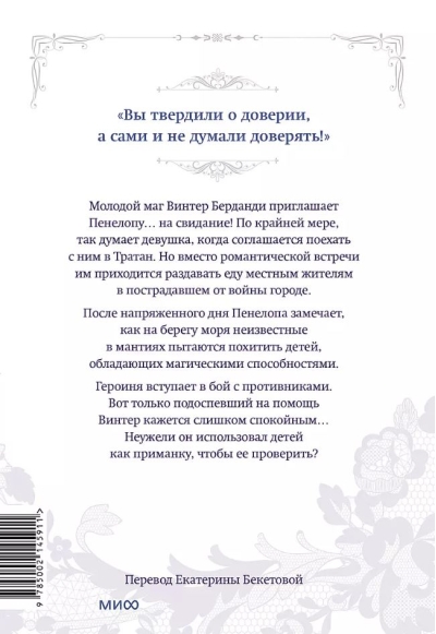 Пенелопа Эрхарт и Винтер Берданди вместе отправились на волонтерскую миссию в пострадавший от войны Тратан. Однажды вечером злодейка наслаждалась умиротворяющим морским пейзажем, как вдруг увидела, как кто-то пытается выкрасть детей, обладающих магическими способностями. Пенелопа самоотверженно вступила в бой с противником, но внезапно ей в душу закралось сомнение… Вдруг Винтер заранее все это подстроил, чтобы ее проверить?