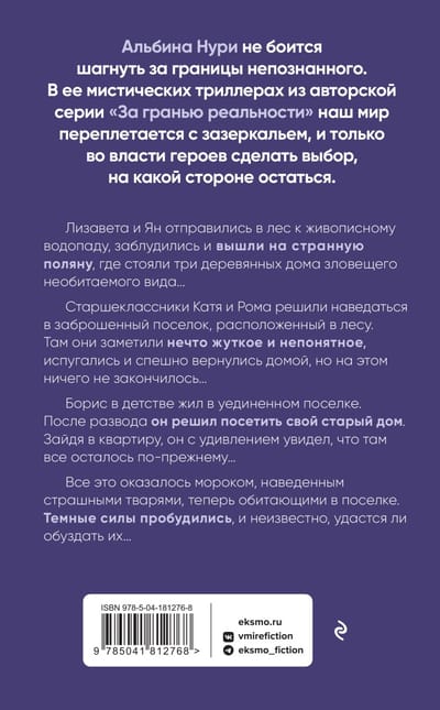 Альбина Нури не боится шагнуть за границы непознанного. В ее мистических триллерах из авторской серии «За гранью реальности» наш мир переплетается с зазеркальем, и только во власти героев сделать выбор, на какой стороне остаться.