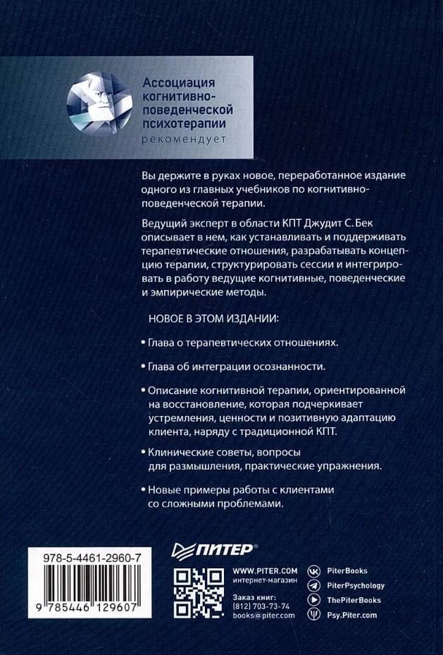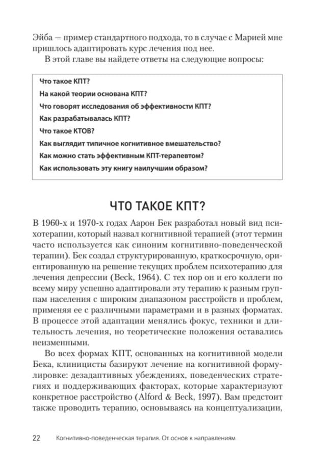 Вы держите в руках новое, переработанное издание одного из главных учебников по когнитивно-поведенческой терапии. Ведущий эксперт в области КПТ, Джудит С. Бек, описывает в нем, как устанавливать и поддерживать терапевтические отношения, разрабатывать концепцию терапии, структурировать сессии и интегрировать в работу ведущие когнитивные, поведенческие и эмпирические методы.
