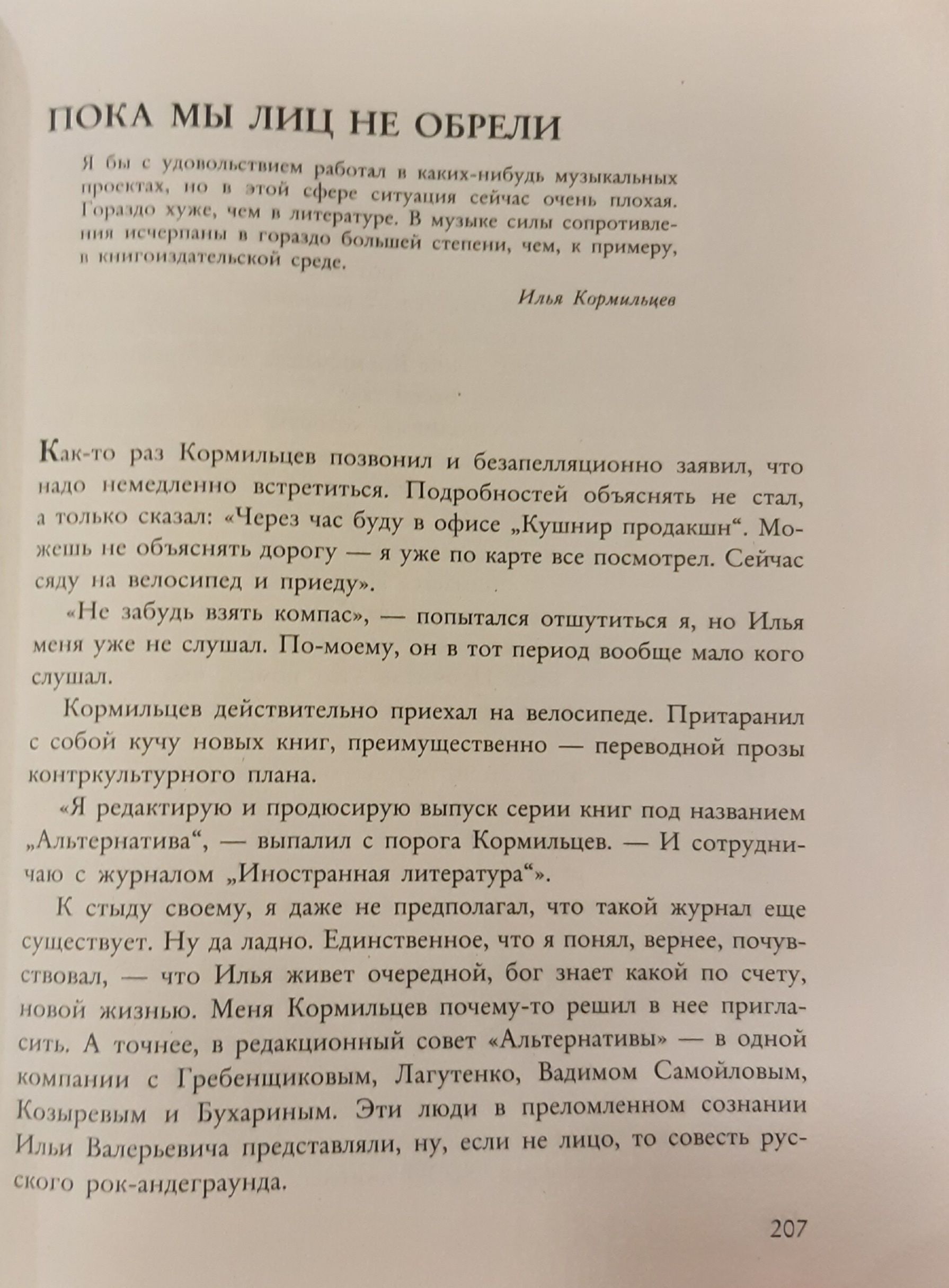 Александр Кушнир был лично знаком с Ильей Кормильцевым, неоднократно брал у него интервью и сотрудничал в рамках разных проектов. Данное издание входит в серию книг Кушнира, посвященных «жизни запрещенных людей». Повесть о Кормильцеве продолжает исследование судеб недооцененных гениев отечественного андеграунда, начатое в книге про Сергея Курёхина «Безумная механика русского рока», получившей премию «Степной волк» в номинации «Лучшая рок-книга 2014 года».
