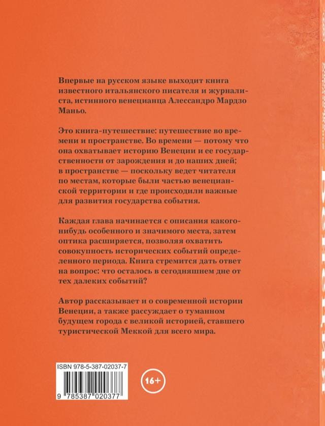 Автор рассказывает и о современной истории Венеции, а также рассуждает о туманном будущем города с великой историей, ставшего туристической Меккой для всего мира.