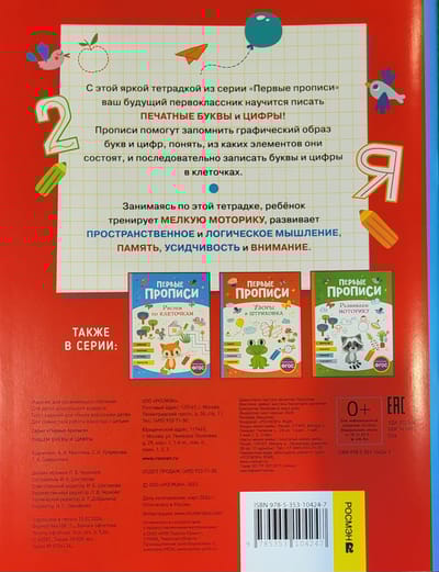 С этой яркой тетрадкой из серии «Первые прописи» ваш будущий первоклассник научится писать печатные буквы и цифры!