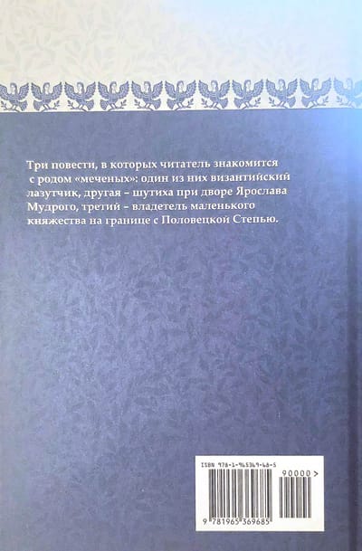 Три повести, в которых читатель знакомится с родом «меченых»: один из них византийский лазутчик, другая – шутиха при дворе Ярослава Мудрого, третий – владетель маленького княжества на границе с Половецкой Степью.
