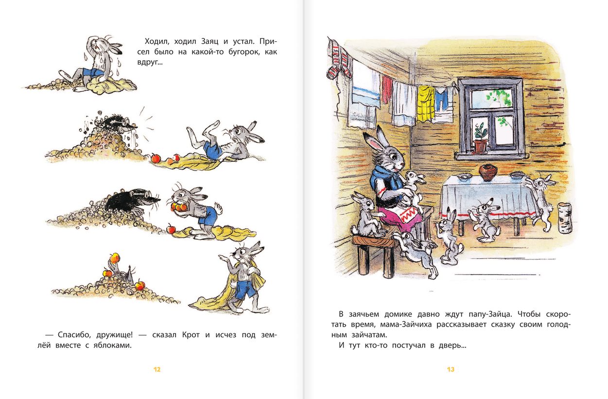 В нашу книгу вошли 3 истории, по которым были сняты мультфильмы: «Мешок яблок», «Кот-рыболов» и «Дядя Миша». Любимых сказочных героев можно увидеть не только в книге, но и на экране. Ваня и Маша Кнопочкины рассказали В. Сутееву о том, как прошёл их год. Он записал их истории. Так появился цикл «Времена года». Мальчишки и девчонки прочитают о приключениях Маши и Вани, а заодно познакомятся с временами года и праздниками. А ещё В. Сутеев придумал удивительный цикл под названием «100 картинок». Читатель теперь может ощутить себя настоящим писателем и сочинить свои истории по картинкам. Для дошкольного возраста.