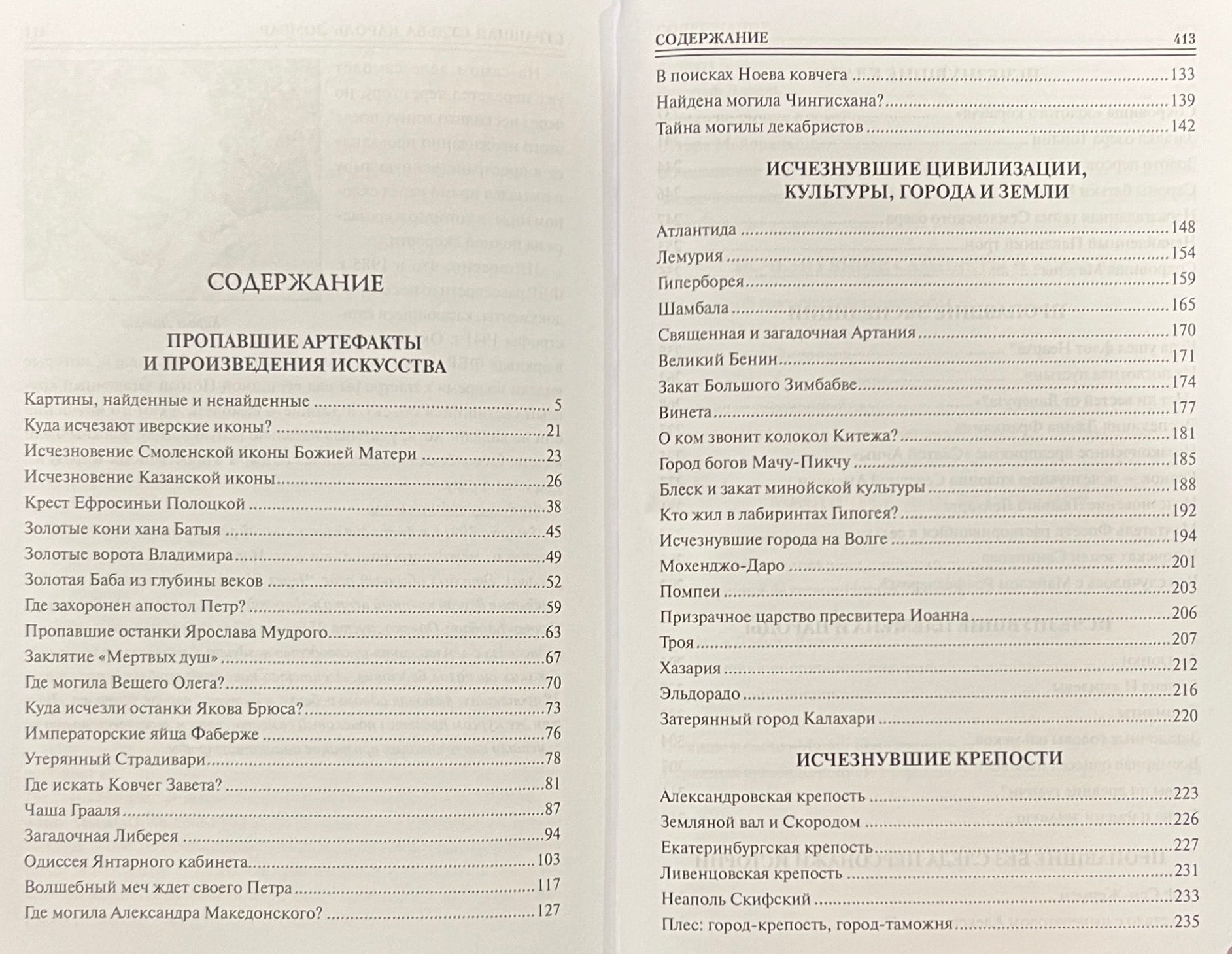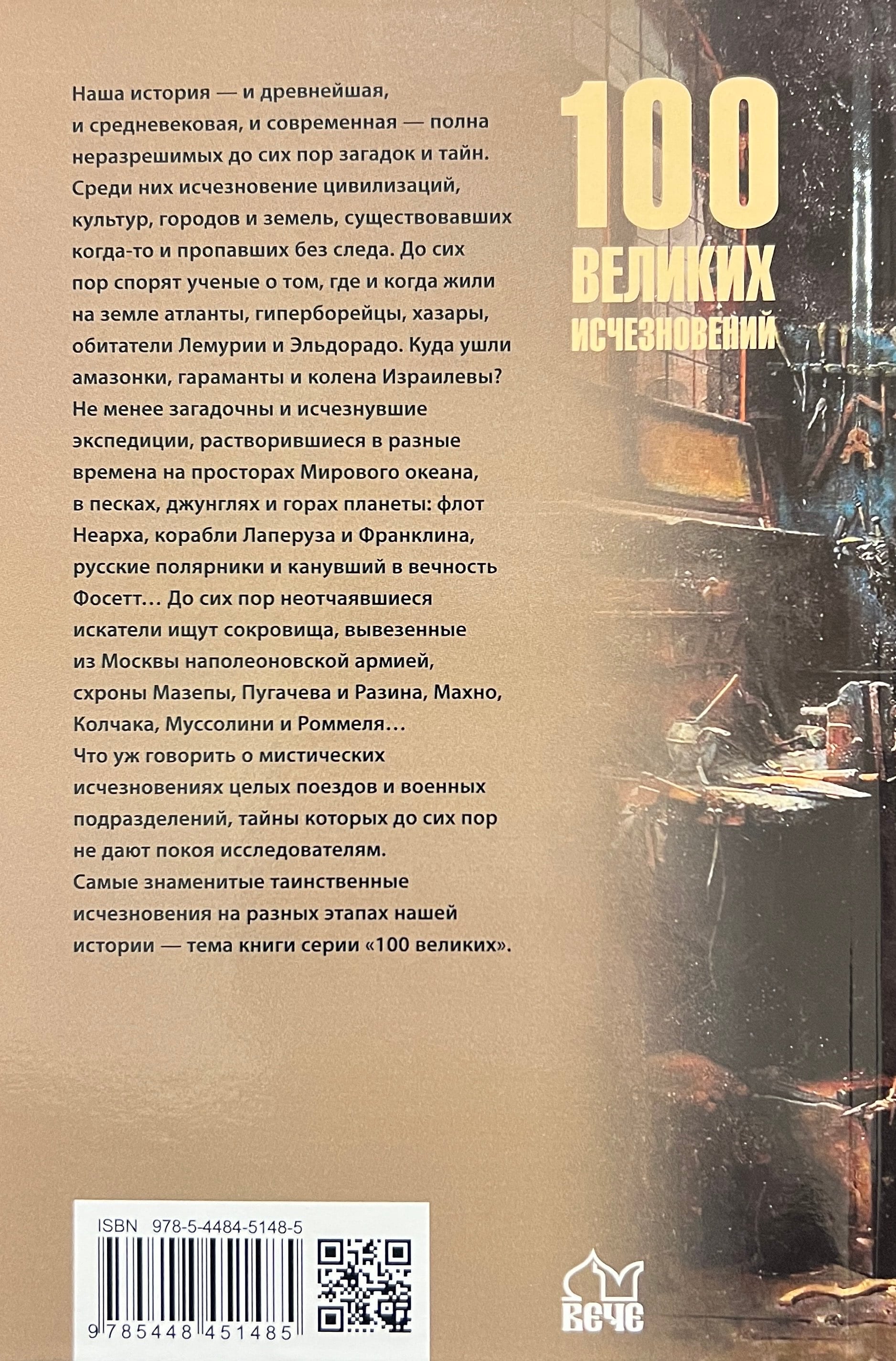 Наша история — и древнейшая, и средневековая, и современная — полна неразрешимых до сих пор загадок и тайн. Среди них исчезновение цивилизаций, культур, городов и земель, существовавших когда-то и пропавших без следа. До сих пор спорят ученые о том, где и когда жили на земле атланты, гиперборейцы, хазары, обитатели Лемурии и Эльдорадо. Куда ушли амазонки, гараманты и колена Израилевы? Не менее загадочны и исчезнувшие экспедиции, растворившиеся в разные времена на просторах Мирового океана, в песках, джунглях и горах планеты: флот Неарха, корабли Лаперуза и Франклина, русские полярники и канувший в вечность Фосетт… До сих пор не отчаявшиеся искатели ищут сокровища, вывезенные из Москвы наполеоновской армией, схроны Мазепы, Пугачева и Разина, Махно, Колчака, Муссолини и Роммеля… Что уж говорить о мистических исчезновениях целых поездов и военных подразделений, тайны которых до сих пор не дают покоя исследователям.