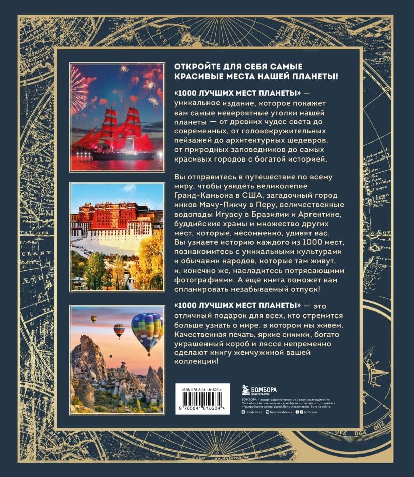 Посетить Австрию, Индонезию, Исландию, Японию, Намибию и множество других стран за один вечер… А почему бы и нет? С книгой «1000 лучших мест планеты» вы отправитесь в незабываемое путешествие по лучшим местам мира. Вы сможете увидеть норвежские фьорды с высоты птичьего полета, полюбоваться легендарным замком Нойшванштайн, насладиться райскими видами греческих бухт, отправиться в плаванье на романтичной лодке в Таиланде, исследовать самые высокие горы Непала и многое другое! Путешествуйте по страницам книги, вдохновляйтесь на новые свершения и поездки и отмечайте для себя места, которые точно захотите посетить!