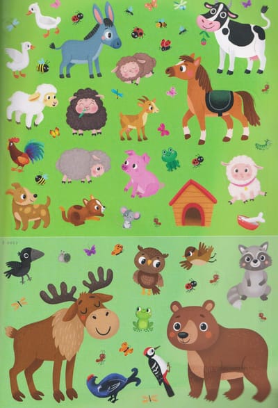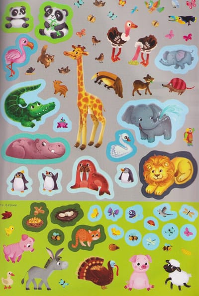 Наклеек много не бывает! В книге с наклейками более 1000 ярких наклеек для непоседливых и любознательных малышей от 3 лет. В альбом вошли самые лучшие наклейки животных из всех серий-бестселлеров. Благодаря 18 тематическим полям ваш малыш познакомится с многообразием животных, птиц и насекомых в разных местах их обитания: в деревне и на ферме, на лугу и в глубинах океана, в джунглях и в африканской саванне и др. Ваш малыш будет надолго увлечён творческим процессом.