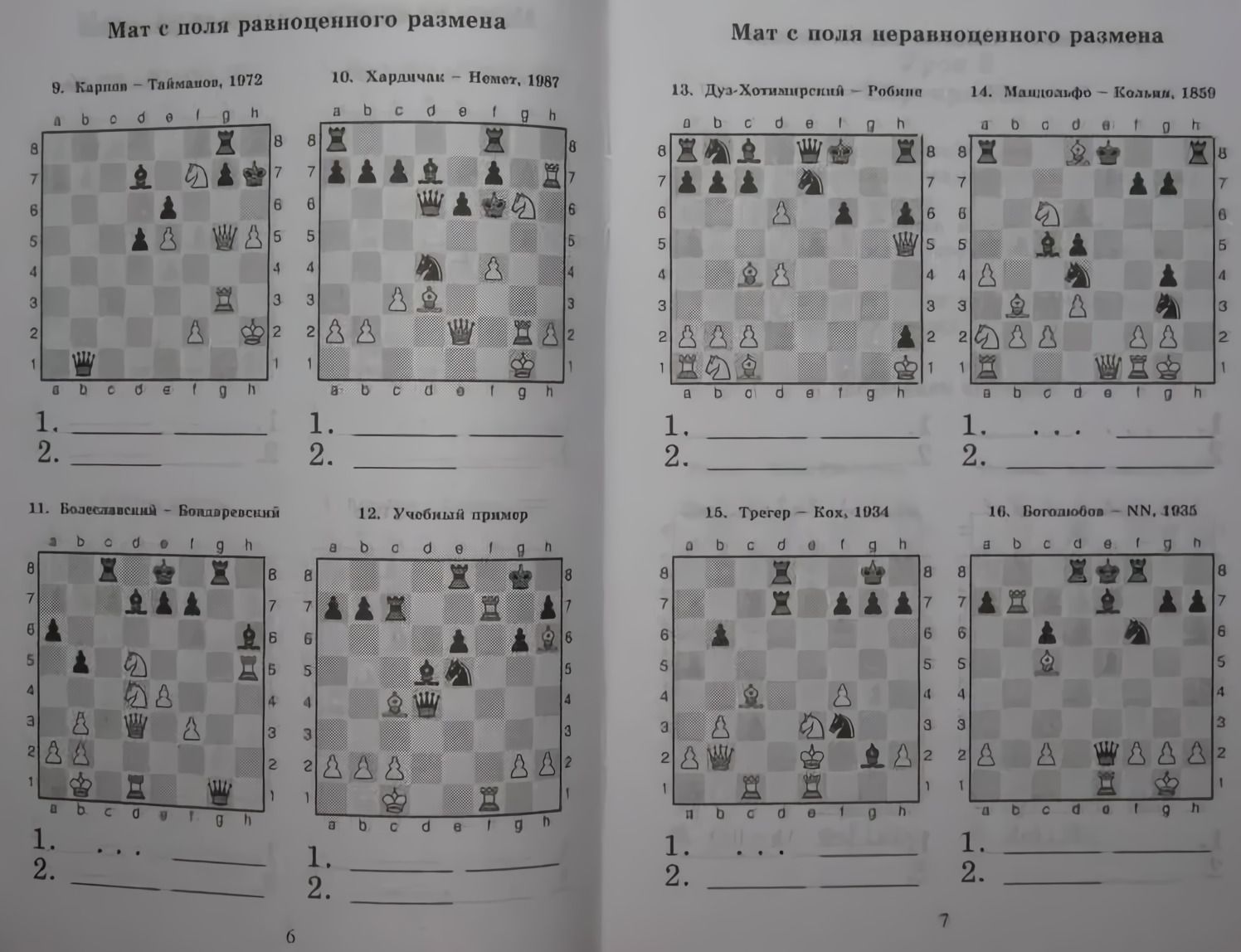 В этой книге специально подобраны задания, соответствующие «‎курсу начинающего бойца»‎. Вначале — задания на мат. Безусловно, юный шахматист должен понять основную задачу шахматной партии и научиться самым разнообразным способам достижения победы.
