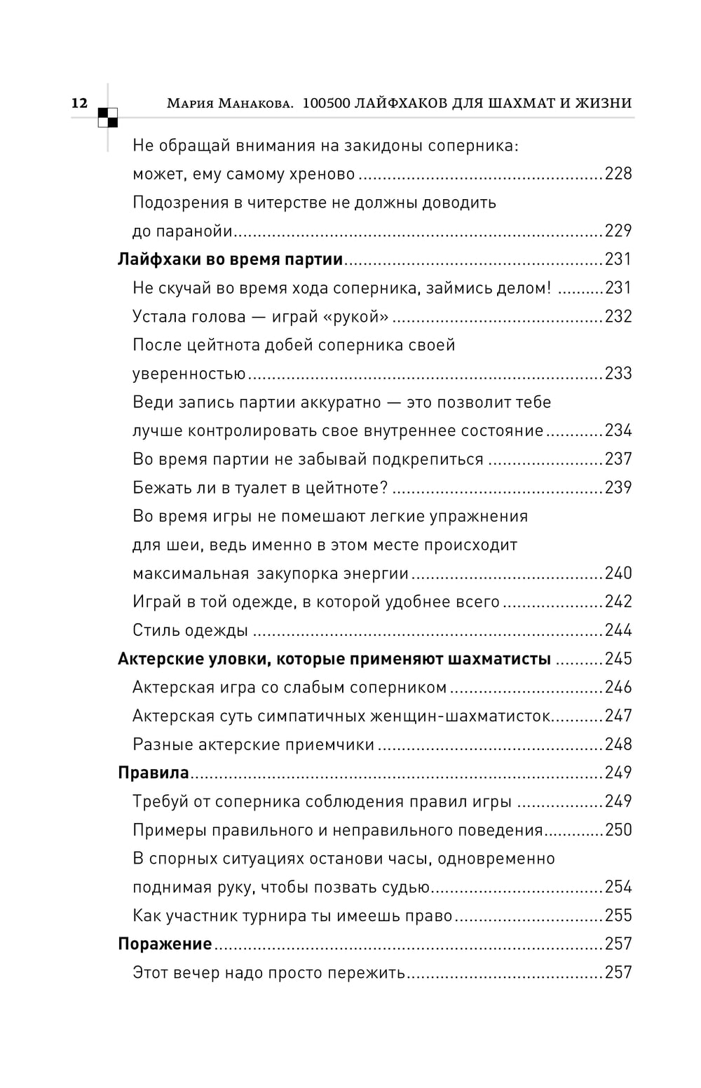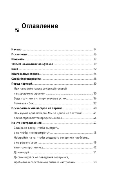 «100500 советов для шахмат и жизни» — это ваш секретный ход, чтобы развить психологическую устойчивость, изменить свой образ мышления и достичь успеха в любой сфере. Так что отбросьте пешку и начните читать прямо сейчас. Вы удивитесь тому, как эта книга может вдохновить и прокачать вашу повседневность.