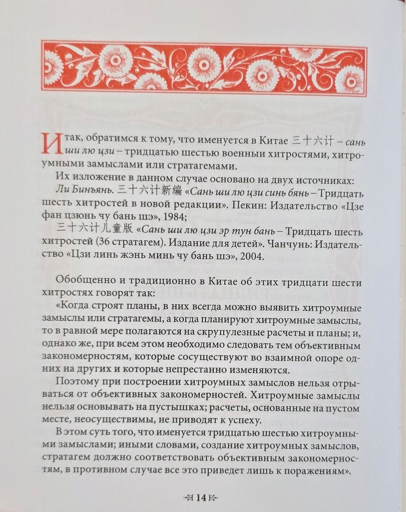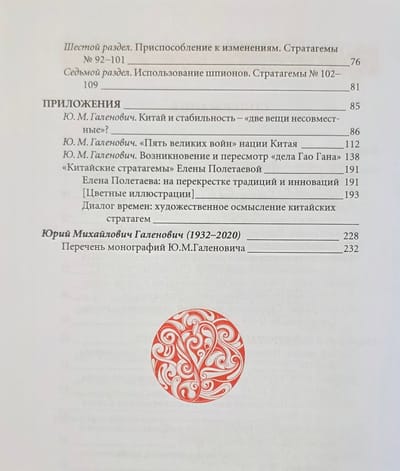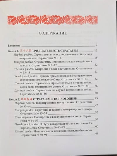В книге помимо знаменитых 36 стратагем (в новом переводе) публикуются продолжающие их так называемые «стратагемы полководцев» (впервые на русском языке).