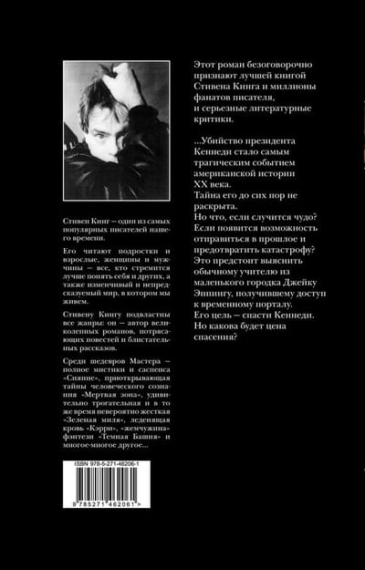 …Убийство президента Кеннеди стало самым трагическим событием американской истории ХХ века. Тайна его до сих пор не раскрыта. Но что, если случится чудо? Если появится возможность отправиться в прошлое и предотвратить катастрофу? Это предстоит выяснить обычному учителю из маленького городка Джейку Эппингу, получившему доступ к временному порталу. Его цель - спасти Кеннеди. Но какова будет цена спасения?