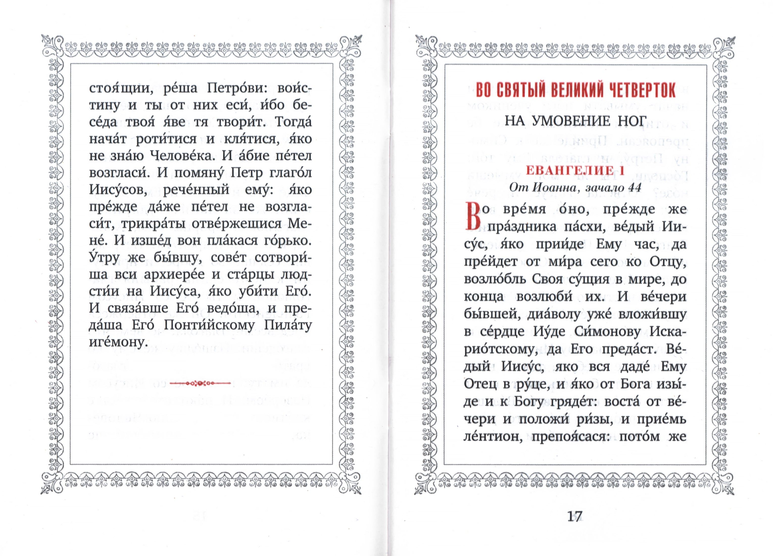 12 Евангелий Святых Страстей Господа Бога и Спаса нашего Иисуса Христа, чтомые на утрени во святой Великий Пяток. С приложением Евангельских чтений во святой и Великий Четверток на литургии, на умовении и по умовении ног и на вечерни во святой Великий Пяток.