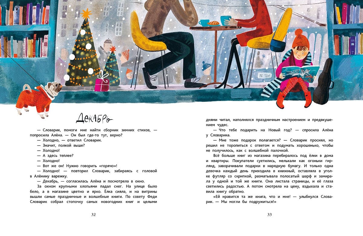 Эта история - про волшебство и приключения, про настоящую любовь и помощь в любых ситуациях, про чудеса и про мечты, которые сбываются. А еще - про маленького Словарика, который живет в большом книжном магазине и очень любит книги. Каждый месяц в книжном приносит с собой новые удивительные открытия: Словарик учится читать, открывает закон книжного притяжения, устраивает в книжном настоящий снегопад и совершает настоящее новогоднее чудо. А еще помогает самому старшему и самому строгому продавцу Алене увидеть все другими глазами. Познакомьтесь со Словариком и вы - скорее открывайте эту книгу, и он с удовольствием проводит вас в чудесную книжную вселенную!