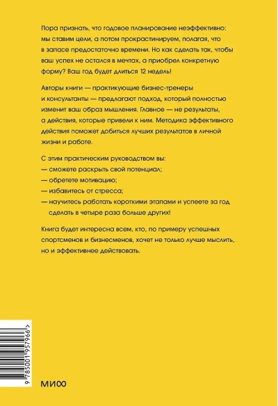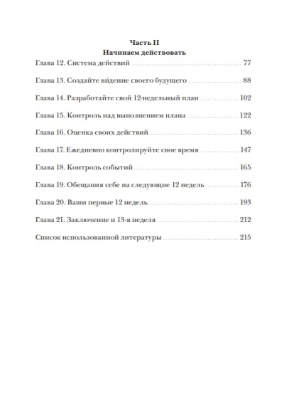 Пора признать, что годовое планирование неэффективно: мы ставим цели, а потом прокрастинируем, полагая, что в запасе предостаточно времени. Но как сделать так, чтобы ваш успех не остался в мечтах, а приобрел конкретную форму? Ускорить процесс — ваш год будет длиться 12 недель! Авторы книги — практикующие бизнес-тренеры и консультанты — предлагают подход, который полностью изменит ваш образ мышления. Главное — не результаты, а действия, которые привели к ним. Методика применима и в личной жизни, и в рабочих вопросах.