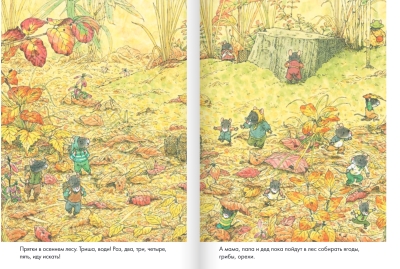 «14 лесных мышей» — очень популярная в Японии и многих европейских странах серия книг о красоте повседневности и о жизни трех поколений мышиного семейства: бабушки, дедушки, мамы, папы и еще десяток мышат.