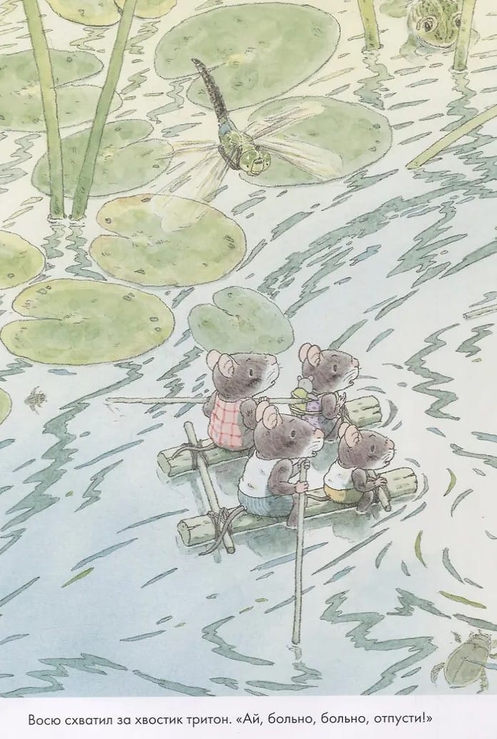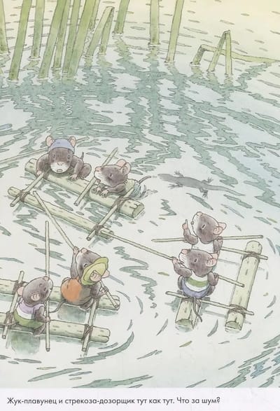 В жаркий летний день мышиное семейство отправляется купаться и строить флотилию на стрекозиный пруд. Играют блики света на воде, качается осока, а вокруг трепещут крыльями, сторожат, охотятся самые разные стрекозы! Наблюдать за ними и другими водными обитателями — целое приключение!