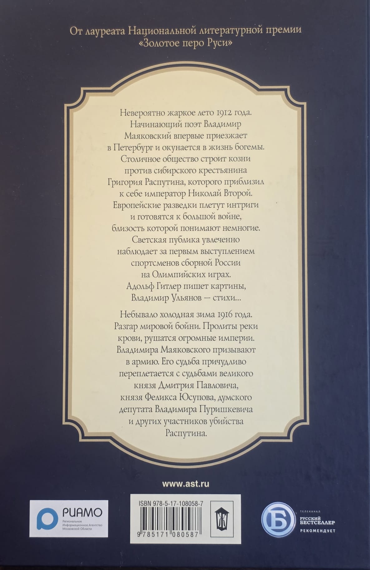 Разгар мировой бойни. Пролиты реки крови, рушатся огромные империи. Владимира Маяковского призывают в армию. Его судьба причудливо переплетается с судьбами великого князя Дмитрия Павловича, князя Феликса Юсупова, думского депутата Владимира Пуришкевича и других участников убийства Распутина.