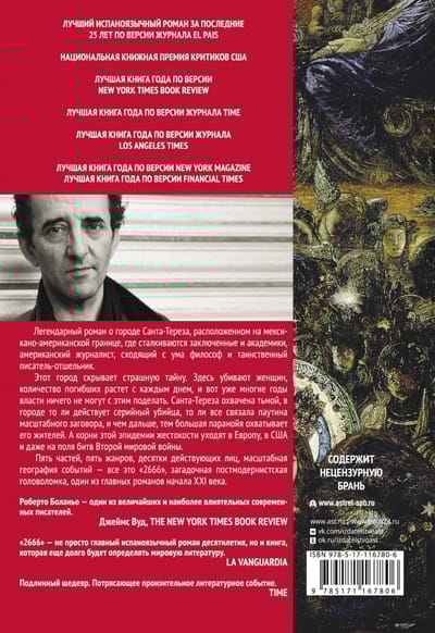 Главный роман от самого выдающегося голоса латиноамериканской литературы своего поколения, лучшая книга года по версии журналов Time, New York Magazine и Financial Times, лауреат национальной книжной премии критиков США. Легендарный роман о вымышленном городе Санта Тереза на мексикано американской границе, где сталкиваются заключенные и академики, американский журналист, сходящий с ума философ и таинственный писатель отшельник. Но этот город скрывает страшную тайну. Здесь убивают женщин, и количество погибших растет с каждым днем. Власти ничего не могут поделать, Санта Тереза охвачена тьмой, и чем дальше, тем более параноидальной становится атмосфера. И корни этой эпидемии жестокости уходят в Европу, в Америку и даже на поля битв Второй Мировой войны. Пять частей, пять жанров, десятки действующих лиц, масштабная география событий — все это «2666», загадочная постмодернистская головоломка, один из главных романов начала XXI века.