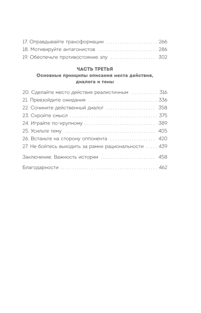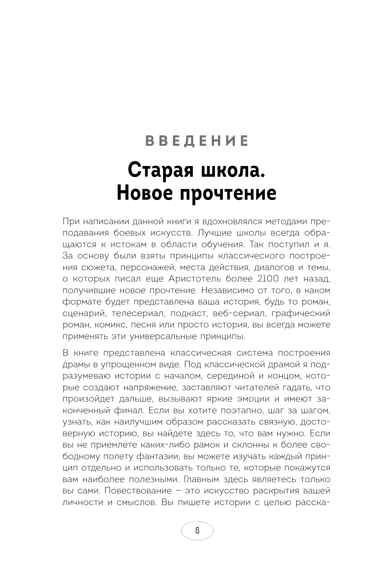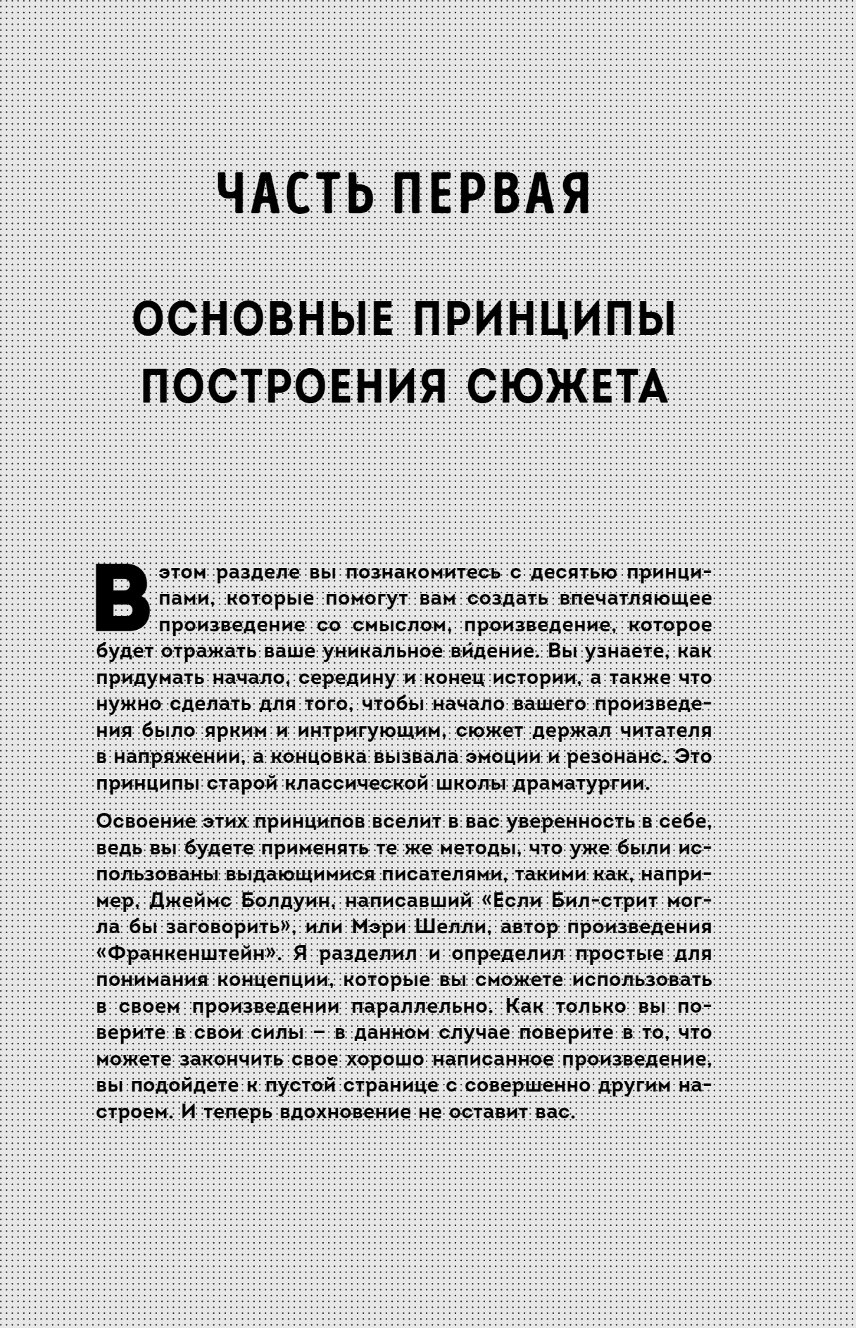 Вы не найдете здесь никакой теории литературы, академических сложных понятий или профессионального жаргона. Все двадцать семь принципов изложены на простом человеческом языке. Если вы хотите поэтапно, шаг за шагом, узнать, как наилучшим образом рассказать связную, достоверную историю, вы найдете здесь то, что вам нужно. Если вы не приемлете каких-либо рамок и склонны к более свободному полету фантазии, вы можете изучать каждый принцип отдельно и использовать только те, которые покажутся вам наиболее полезными. Главным здесь являетесь только вы сами.