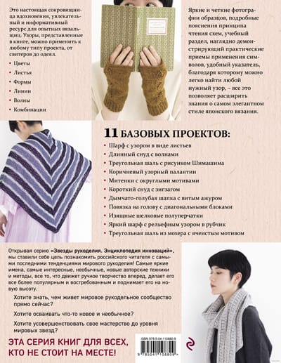 Одна из самых популярных книг в мире с японскими узорами - теперь на русском языке! Эту книгу перевели практически на все европейские языки, и неслучайно, ведь «280 японских ажуров» - это настоящая сокровищница вдохновения, увлекательный и информативный ресурс для опытных вязальщиц. Узоры, представленные в книге, удивительно изящные, исполненные японской утонченности, можно применить к любому типу проекта, от свитеров до одеял. Яркие и четкие фотографии образцов, подробные пояснения принципа чтения схем, учебный раздел, наглядно демонстрирующий практические приемы применения символов, удобный указатель, благодаря которому можно легко найти любой нужный узор – все это позволяет расширить свои знания о самом элегантном стиле японского вязания. 11 базовых проектов дают возможность сразу же опробовать выбранные мотивы. Это роскошный подарок для любой вязальщицы, стремящейся к творческой самореализации!